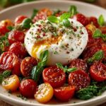 Der Burrata-Salat und ofengeröstete Tomaten ist mehr als ein Rezept – er ist eine Lebenseinstellung. Er beweist, dass die besten Dinge im Leben die einfachsten sind, wenn man die richtigen Zutaten mit Liebe und Geduld zusammenbringt. Dieses Gericht wird Sie immer wieder begeistern. Tauchen Sie ein in mediterrane Aromen und zaubern Sie ein Stück italienischer Sonne auf den Teller. Guten Appetit!