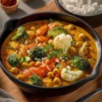 Dieses Cremiges Gemüse Curry mit Kichererbsen und Kokosmilch ist weit mehr als nur eine Mahlzeit; es ist eine Umarmung für die Seele, ein Fest der Farben und Aromen, das jede Küche in ein exotisches Paradies verwandelt. Wir haben gesehen, wie einfach es ist, dieses Gericht an individuelle Vorlieben anzupassen – sei es bei der Schärfe oder den Gemüsesorten. Es überzeugt nicht nur durch seinen unwiderstehlich cremigen Geschmack und die reichhaltige Textur, sondern auch durch seine Vielseitigkeit und die Möglichkeit zur Vorbereitung. Ob für einen gemütlichen Abend zu Hause oder ein geselliges Beisammensein, dieses Curry verspricht stets ein unvergessliches Geschmackserlebnis und wird garantiert zum neuen Lieblingsrezept in Ihrer Sammlung. Guten Appetit!